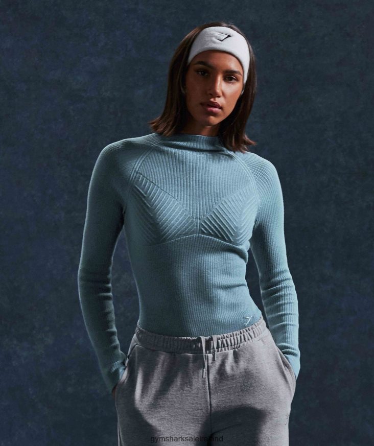Gymshark Sale J6J4BH446 Gymshark Women Pause Knitwear Long Sleeve Top Charred Blue/Tame Blue
